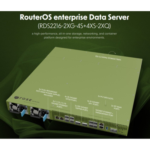 5、搭載RouterOS系統 – 最靈活、模組化的網路作業系統。支援進階儲存功能,包括透過NVMe-TCP導出區塊設備、加密層、模組化儲存配置等,輕鬆擴充基礎架構。無訂閱費用,無功能限制。