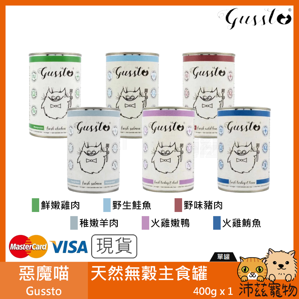沛茲寵物【惡魔喵 Gussto 天然無穀主食罐 400g】惡魔 天然 無穀 德國 主食罐 貓罐 貓 罐