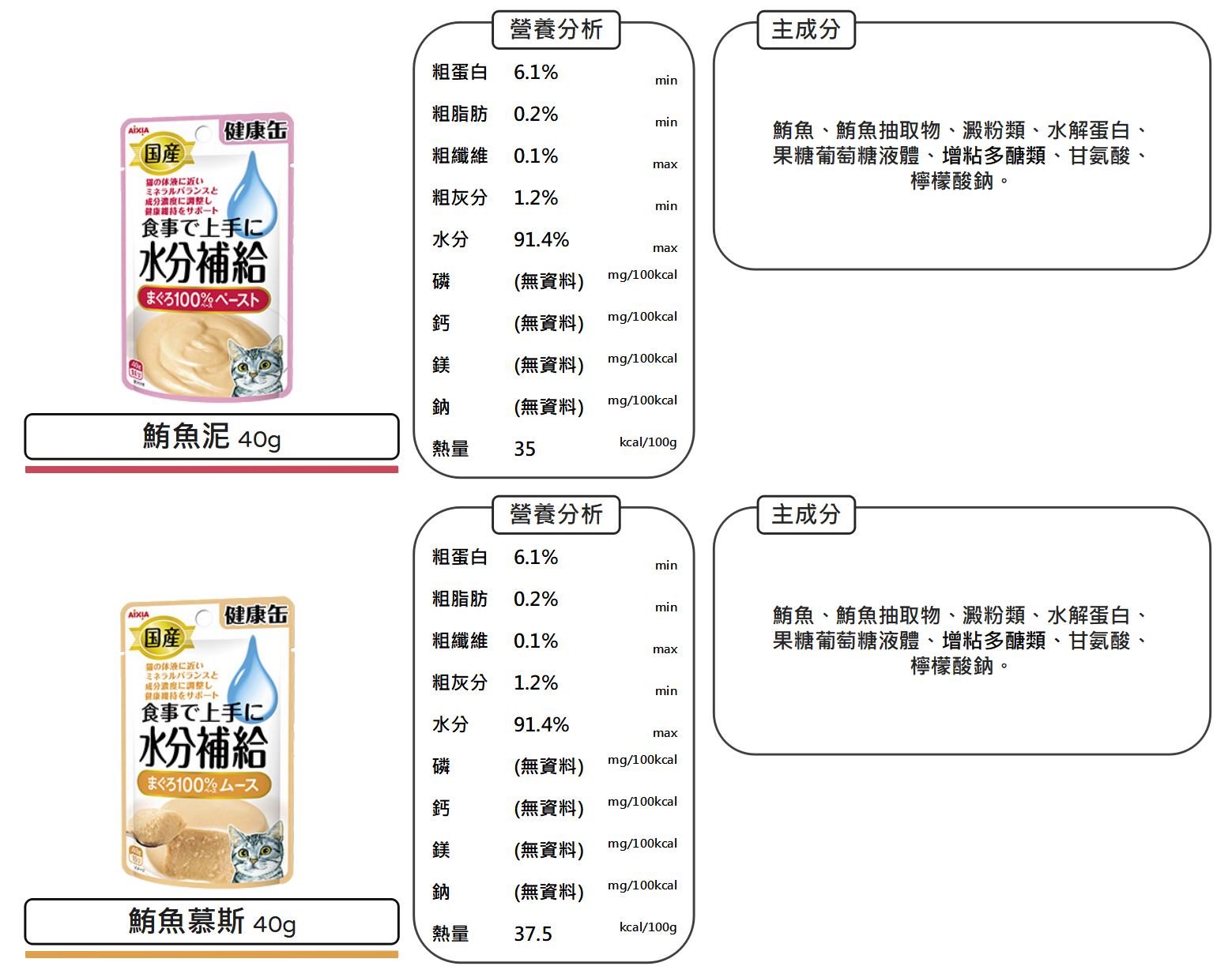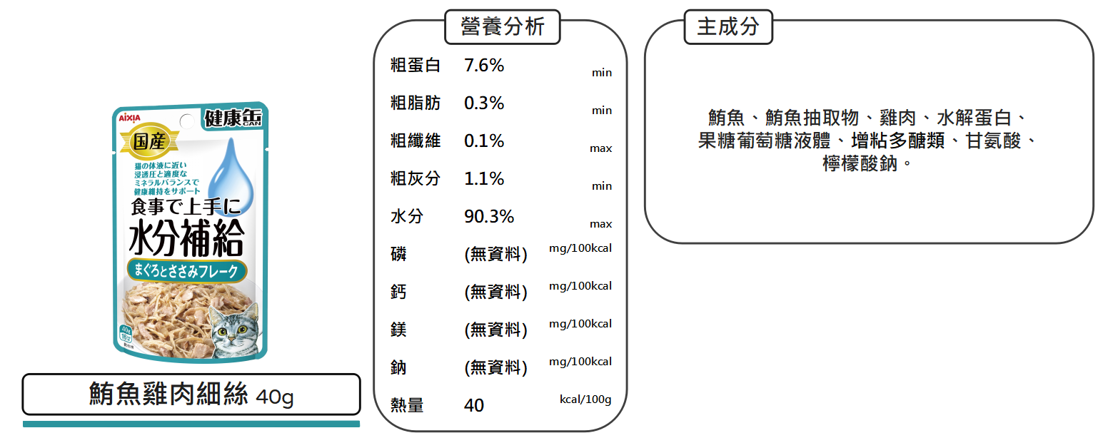 沛茲寵物【愛喜雅 AIXIA 水分能量餐包 40g】健康罐 水分 能量 軟包 日本 副食罐 貓 餐包