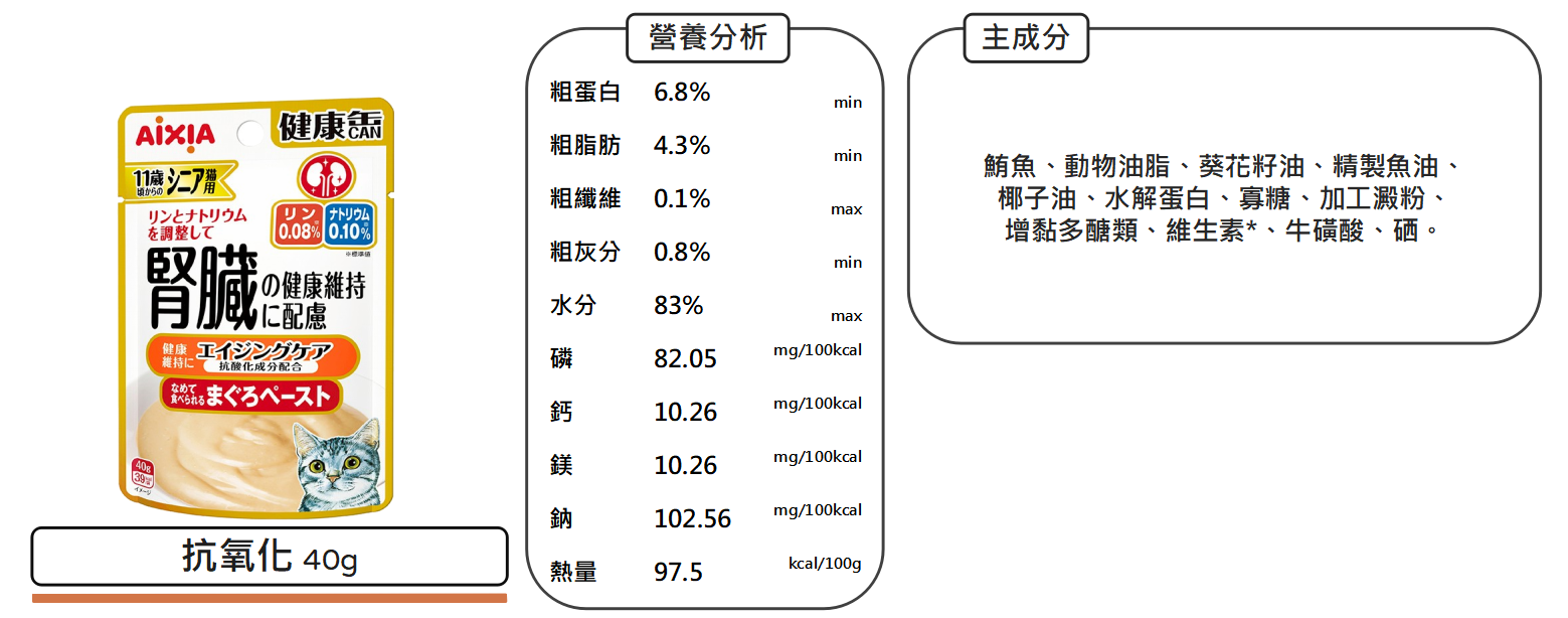 沛茲寵物【愛喜雅 AIXIA 健康罐餐包 40g】腎臟 尿路 關節 餐包 泰國 副食罐 貓罐 貓 罐