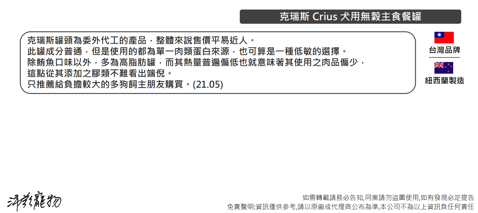 沛茲寵物【克瑞斯 Crius 犬用天然主食罐 375g】Ceres 無穀 紐西蘭 主食罐 狗罐 罐