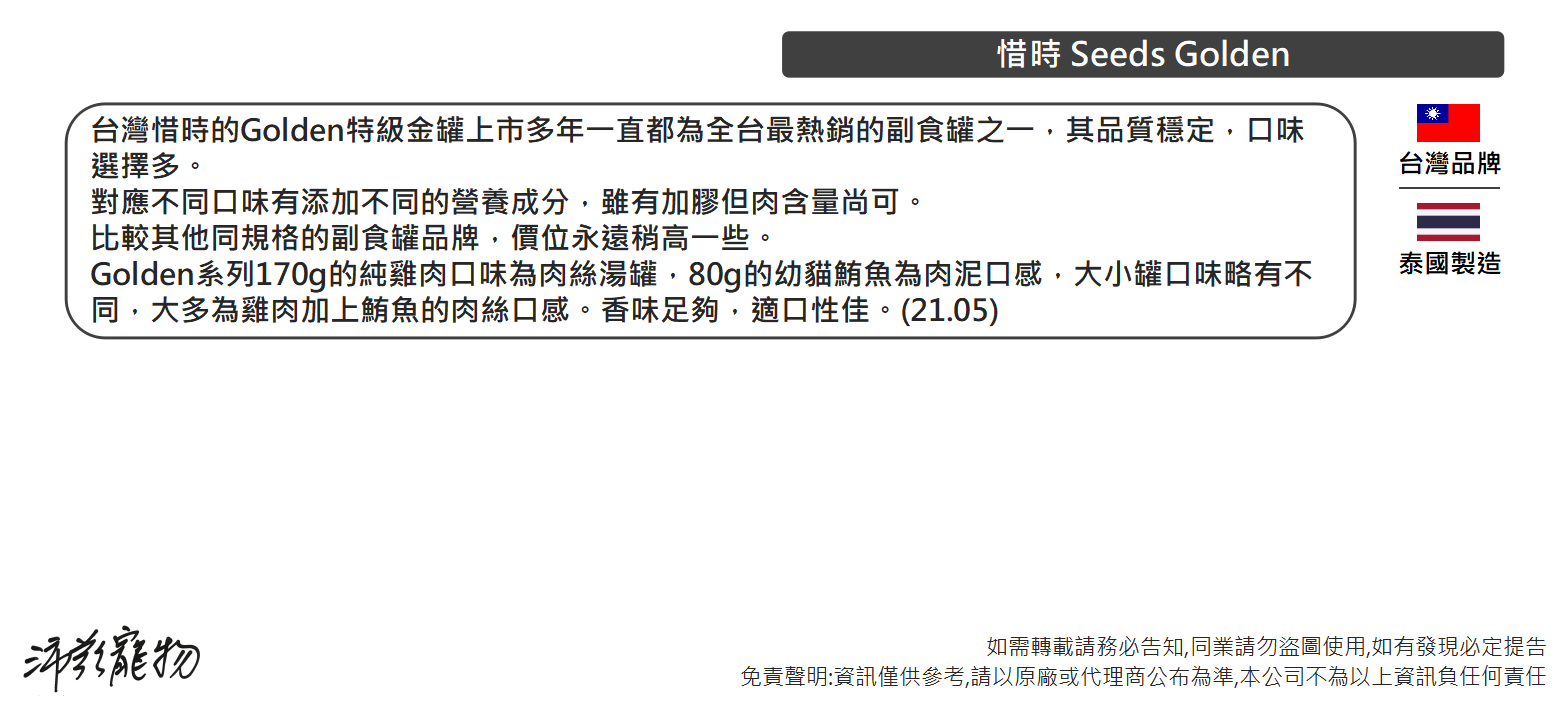 沛茲寵物【惜時 Seeds 特級金罐 170g】Golden 大金罐 泰國 副食罐 貓罐 貓 罐