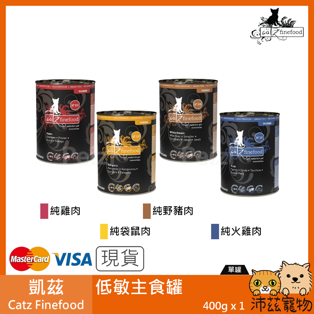 沛茲寵物【凱茲 Catz Finefood 低敏主食罐 400g】無膠 低敏 德國 主食罐 貓罐 貓 罐
