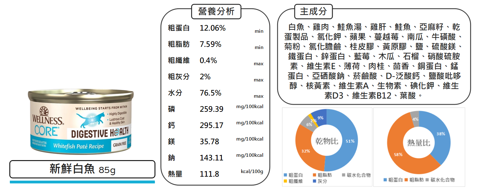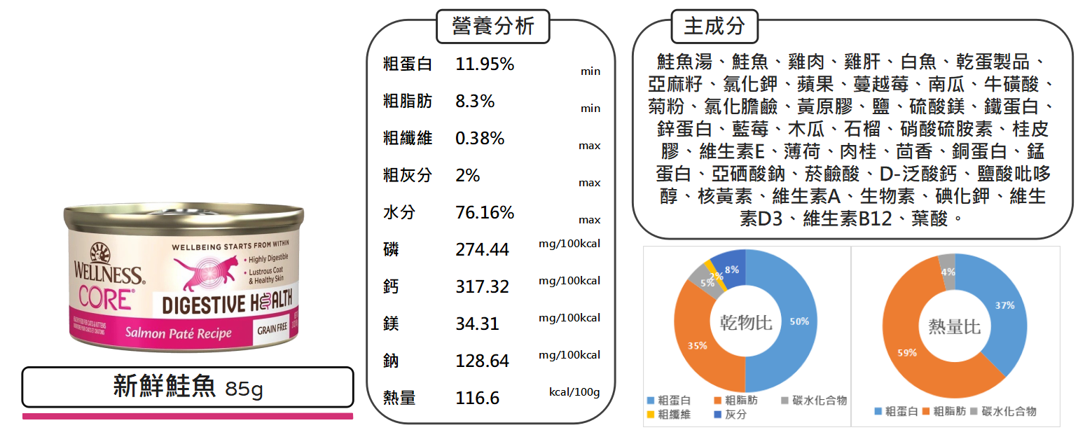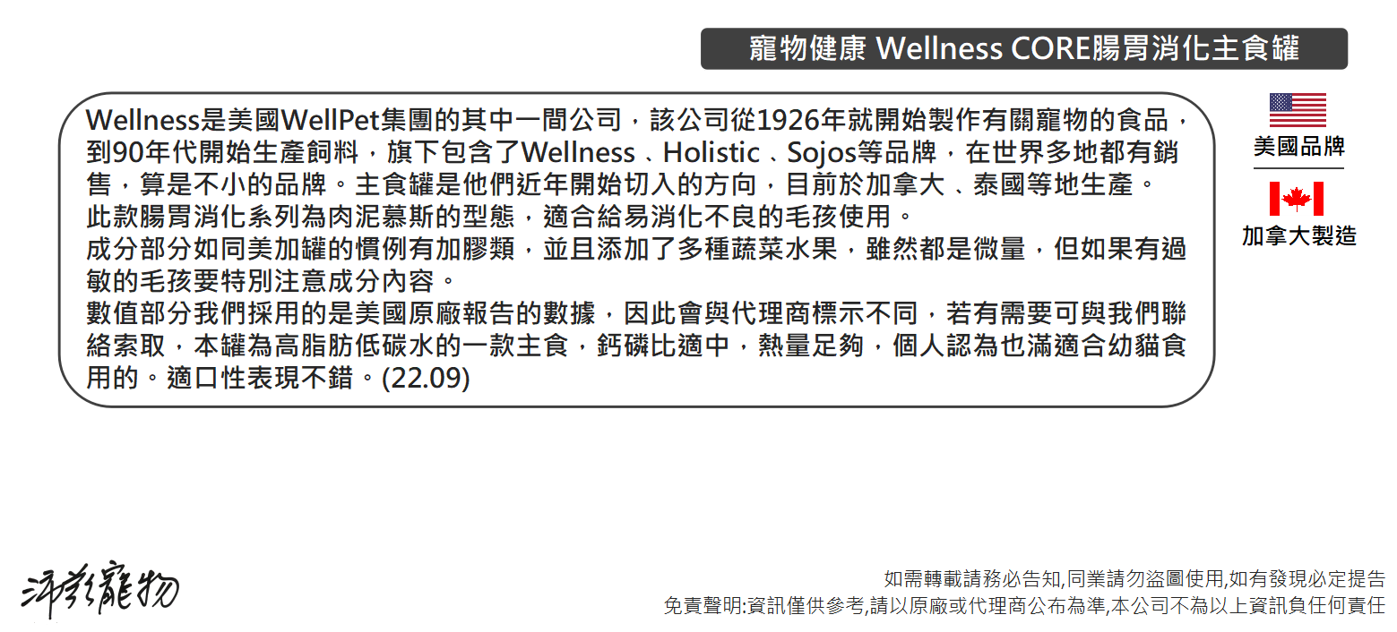 沛茲寵物【寵物健康 Wellness 腸胃機能主食罐 85g】CORE 機能 腸胃 慕斯 加拿大 主食罐 貓罐 貓罐
