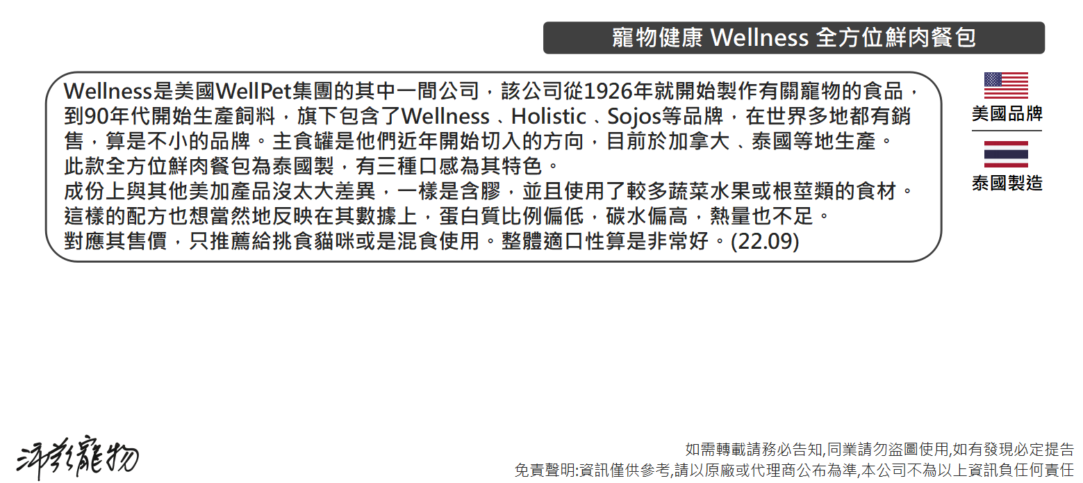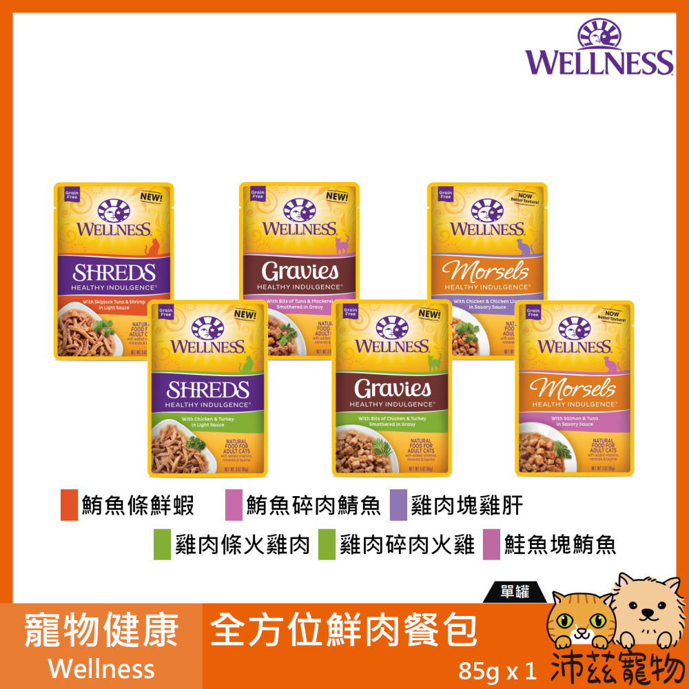 沛茲寵物【寵物健康 Wellness 全方位鮮肉餐包 85g】響鮮肉 全方位 餐包 泰國 主食罐 貓罐 貓 罐