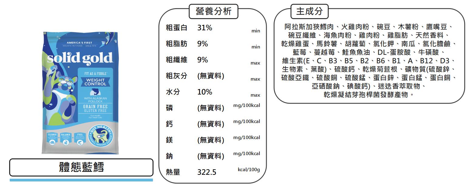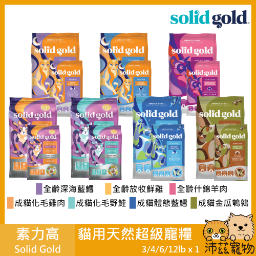 沛茲寵物【素力高 Solid Gold 貓用天然超級寵糧】原速利高 美國 貓飼料 貓 飼 料 3lb 6lb 12lb