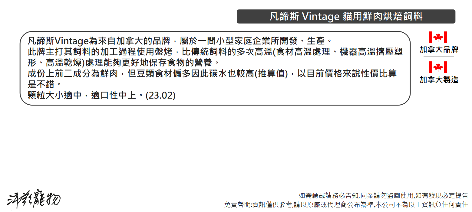沛茲寵物【凡諦斯 Vintage 貓用鮮肉烘焙飼料】無穀 盤烤 烘焙 貓糧 加拿大 貓飼料 貓 飼料 300g