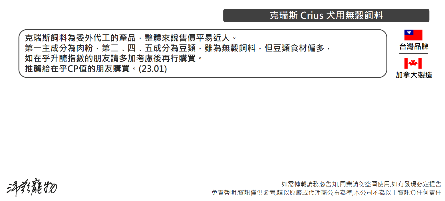 沛茲寵物【克瑞斯 Crius 犬用無穀飼料 5lb 15lb 30lb】無穀 風乾肉塊 加拿大 狗飼料 狗 飼料