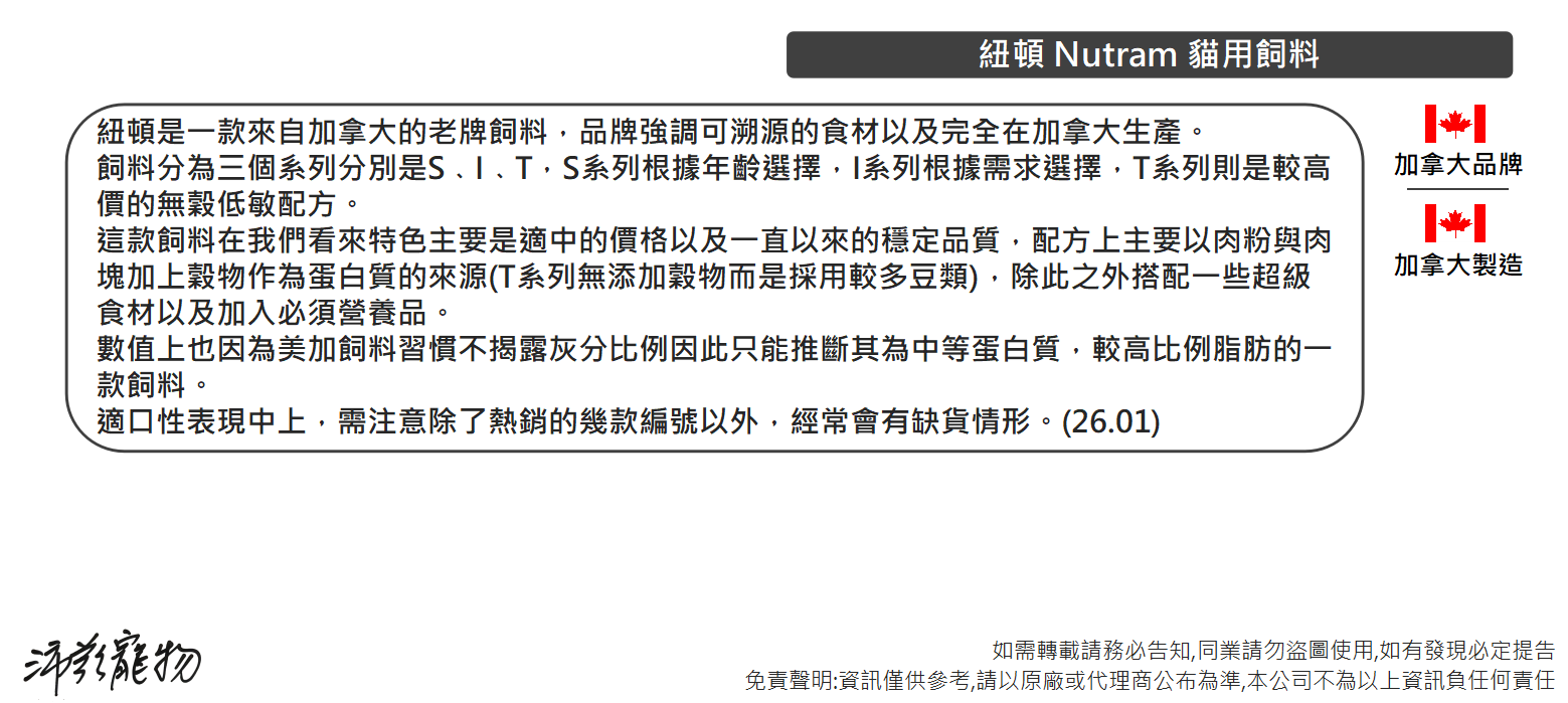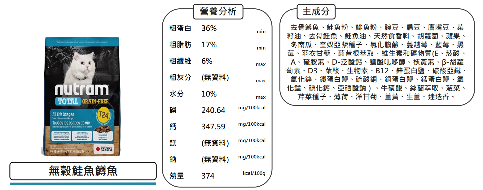 沛茲寵物【紐頓 Nutram 貓飼料】T22 T24 無穀 低敏 美國 貓飼料 貓 飼料 1.13kg