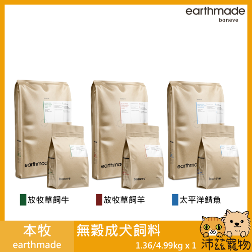 沛茲寵物【本牧 earthmade 無穀成犬糧】動物福利 鯖魚 無穀 紐西蘭 狗飼料 狗 飼料 1.36kg 4.99k
