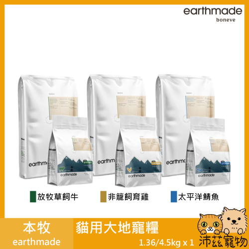 沛茲寵物【本牧 earthmade 無穀全齡貓糧】動物福利 雞肉 無穀 紐西蘭 貓飼料 貓 飼料 1.36kg 4.5k