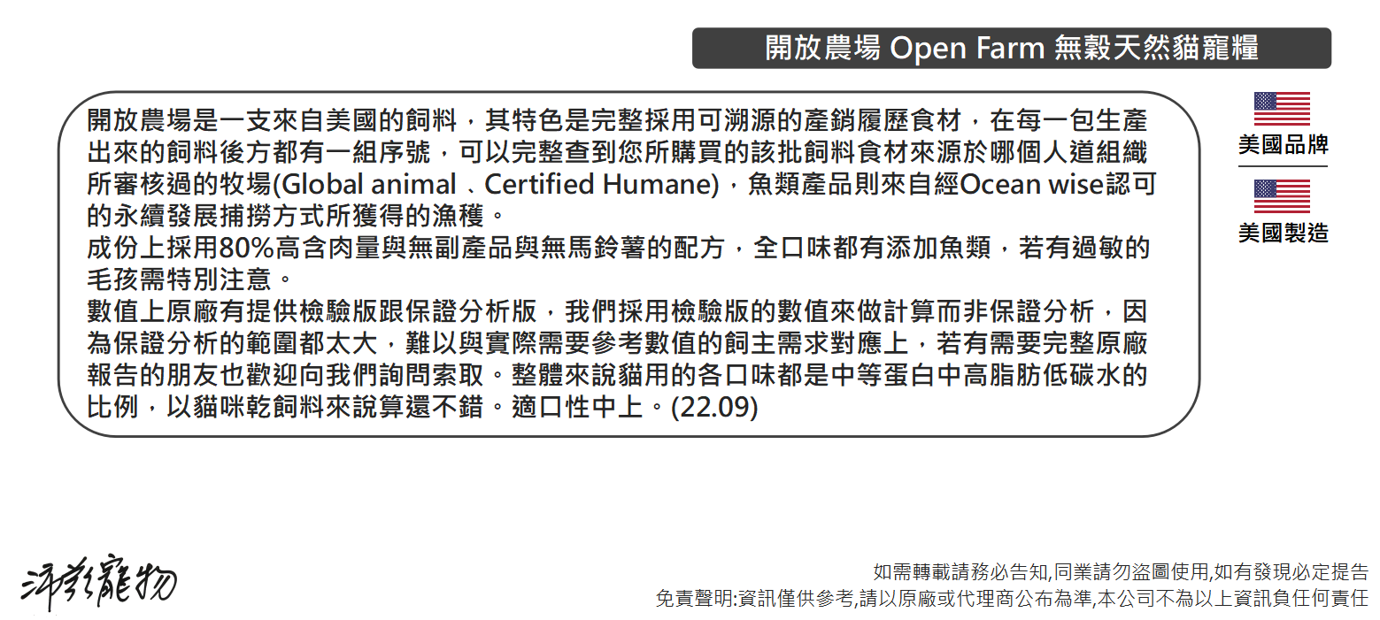 沛茲寵物【開放農場 Open Farm 無穀貓飼料】無穀 產銷履歷 低碳水 美國 貓飼料 貓 飼料 2lb 4lb
