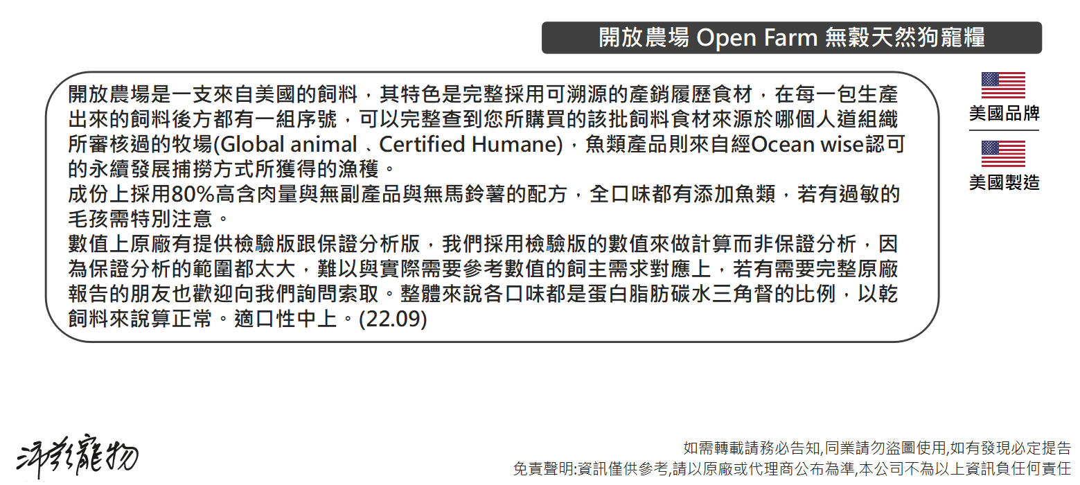 沛茲寵物【開放農場 Open Farm 犬用無穀天然寵糧 4lb 11lb】無穀 低碳水 美國 狗飼料 狗 飼料