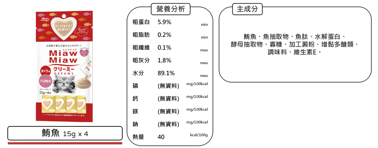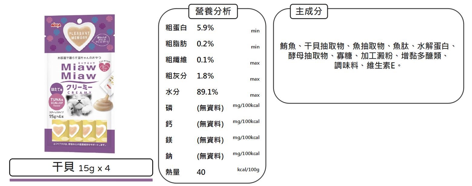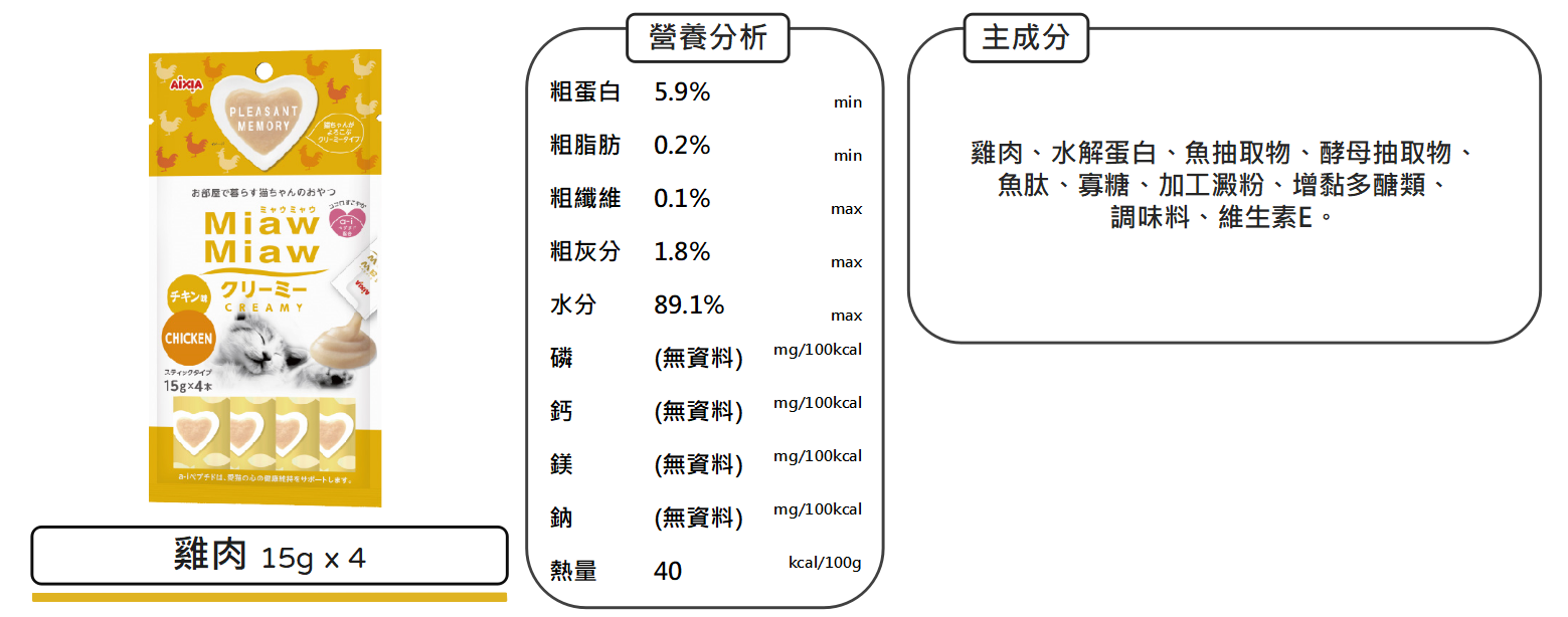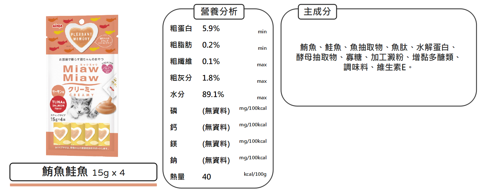 沛茲寵物【愛喜雅 AIXIA 妙喵肉泥】Miaw Miaw 雞肉 鮭魚 干貝 肉泥 泰國 貓零食 貓 零食