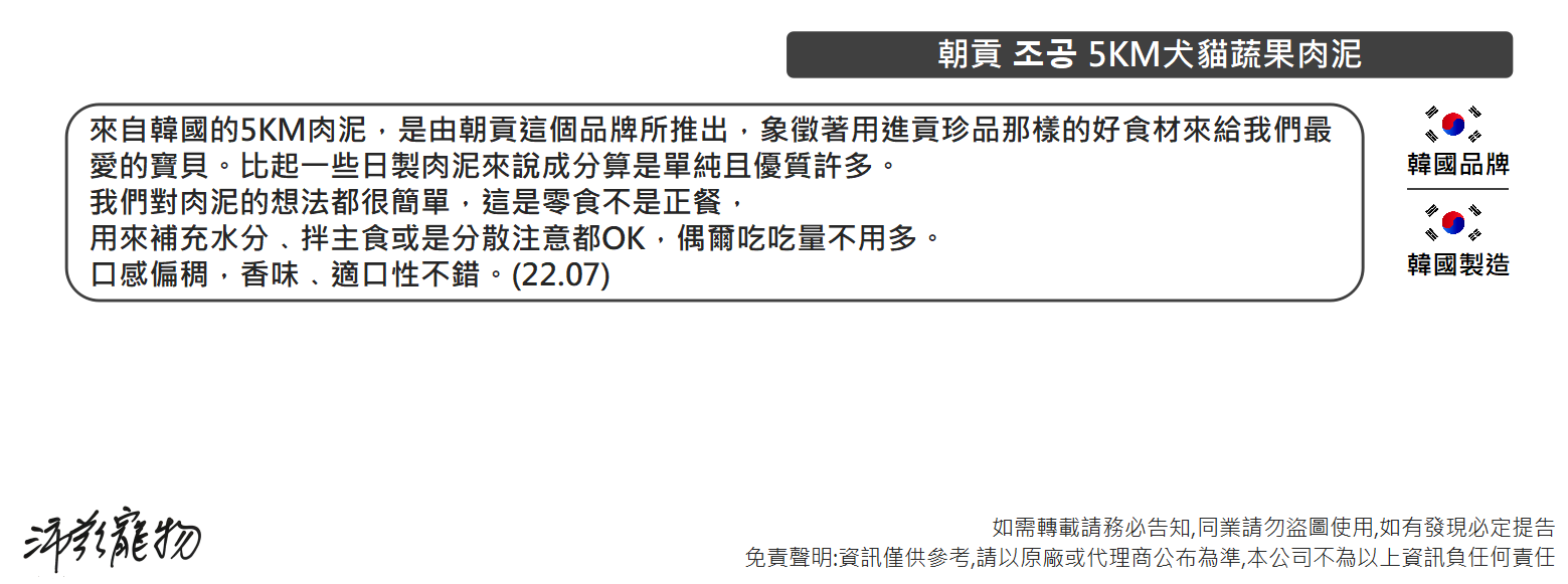 沛茲寵物【朝貢 조공 5km犬貓營養肉泥】無膠 蔬果 犬貓 肉泥 韓國 狗零食 貓零食 貓 狗 零食
