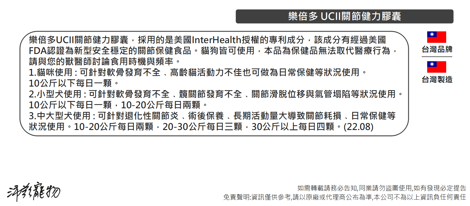 沛茲寵物【樂倍多 Lapeto UC-II 非變性二型膠原蛋白】UCII 膠原蛋白 關節 台灣 狗 保健品