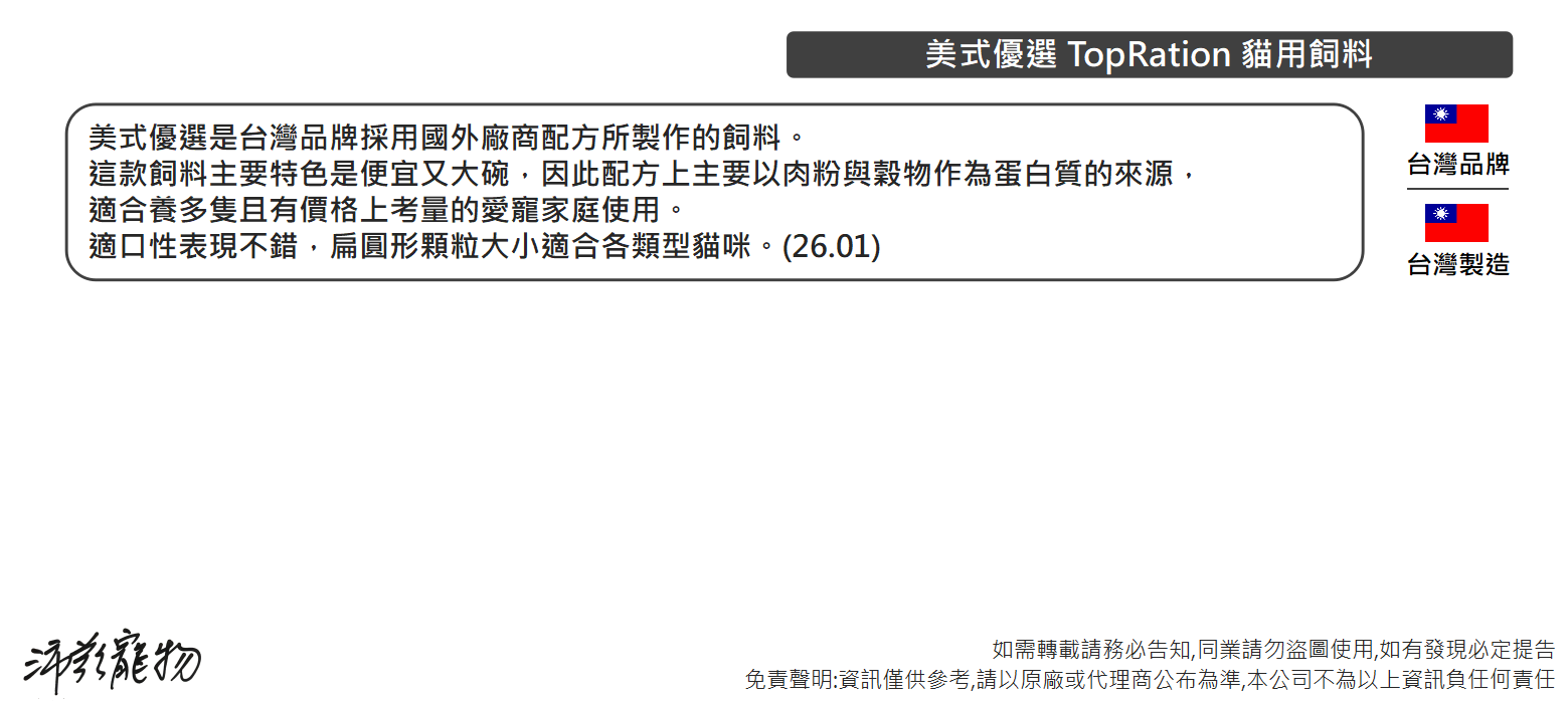 沛茲寵物【美式優選 TOP RATION 貓用飼料 300g】平價 主食 台灣 貓飼料 貓 飼料
