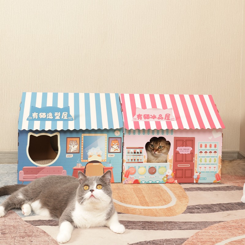 【喵的咧選物】貓抓屋 貓抓窩 店面造型貓屋 紙箱屋 貓抓板【台灣現貨】
