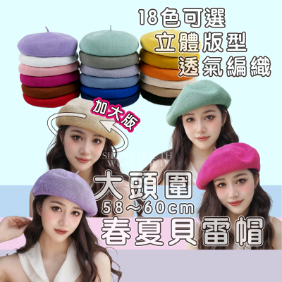 春夏貝雷帽 貝雷帽 大頭圍帽子 貝蕾帽 立體針織貝雷帽 畫家帽 薄款貝雷帽 蘑菇帽 南瓜帽 大頭圍貝雷帽