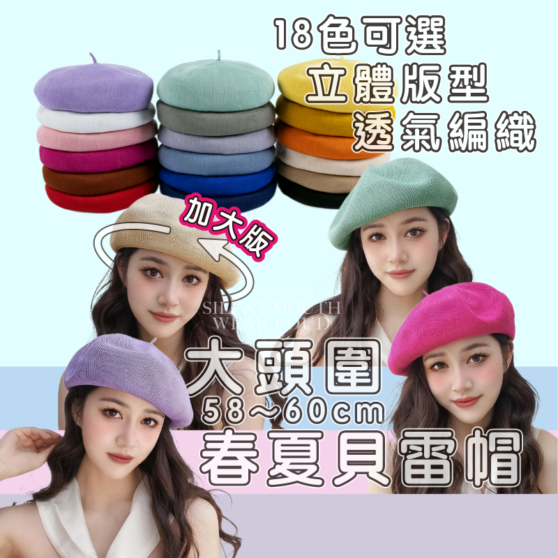 春夏貝雷帽 貝帽 大頭圍帽子 貝蕾帽 立體針織貝雷帽 畫家帽 薄款貝雷帽 蘑菇帽 南瓜帽 大頭圍貝雷帽