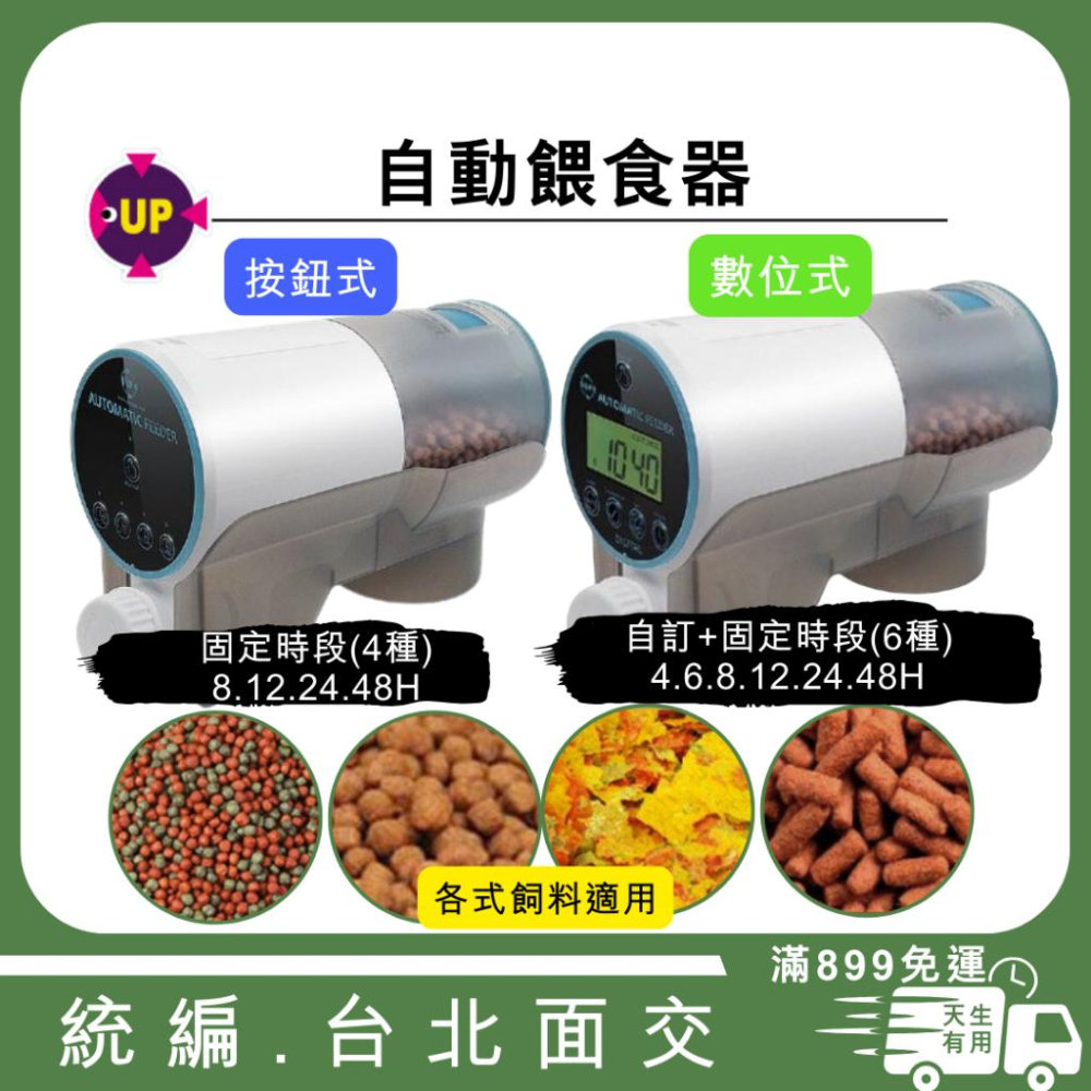 按鈕式/數位式自動餵食器 [商品名稱]UP 自動餵食器(本商品不含電池) [商品規格] UP 按鈕式-自動餵食器 UP 數位式-自動餵食器 [商品敘述] ✅可調整餵食時段。 ✅開口可調整送料的多寡。 ✅外型輕巧時尚,安裝方便。 ✅設計精良之自動鍡食器,可有效的防止飼料糾結。 ✅超靜音設計 旋轉餵食無聲 ⚠️此產品需自行另購3號電池 [操作方法]操作前,請先打開電池蓋裝上2顆AA電池(不含電池)後開始操作。 🚩手動模式 按一下手動按鈕,料桶就轉動一圈開始餵食。 🚩自動模式 ●有4段模式可供選擇,8小時/12小時/24小時/48小時。 ●當你選擇8小時餵食一次時,請按一下8小時按鈕,按鈕上方指示燈會亮,而後開始緩慢閃爍,此時進入自動模式,從按下按鈕開始計時,每隔8小時,料桶轉一圈開始餵食。(其餘類推) ●當你中途想增加餵食時,可按一下手動按鈕,料桶就轉動一圈餵食,餵時後回到自動模式。 ●如需切換到手動模式,請長按manual手動鈕3秒鐘,上方指示燈亮後緩慢閃爍,進入手動模式,之前自動模式被取消,此手動模式下,每按一次manual按鈕,就轉動餵食一次。 設定完成後,請裝上加料漏斗並填充飼料後,拿掉加料漏斗,調節飼料出口大小,後將自動餵食器裝上魚缸開始使用。 ✅下標前請閱讀賣場購物須知