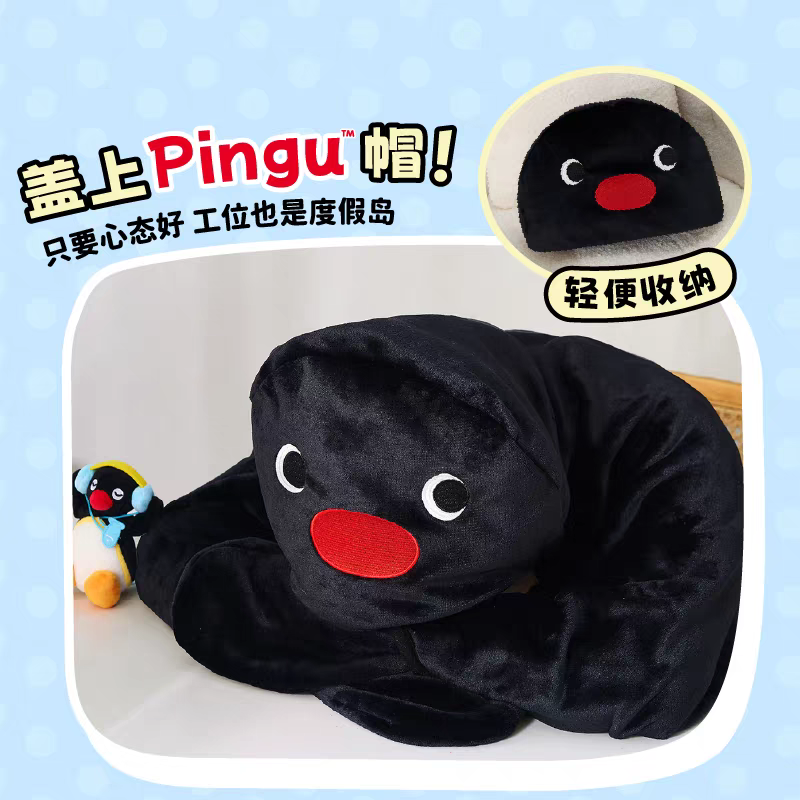 〈預購〉企鵝家族 pingu 黑色 帽毯 毯子 蓋毯