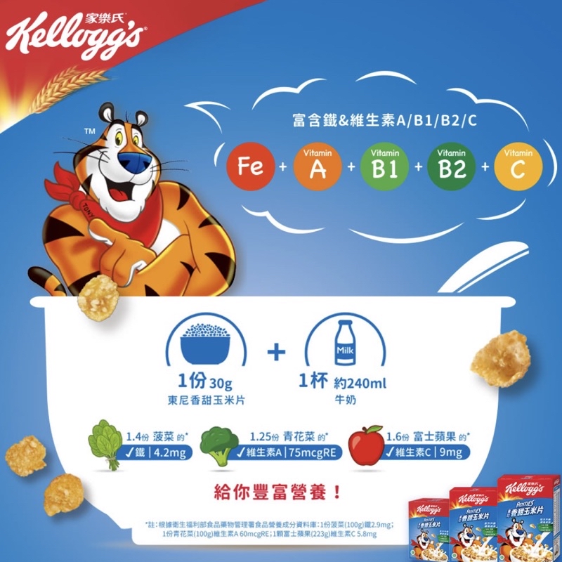 玉米、糖、麥芽萃取、鹽、維生素C、維生素E、煙鹼醯胺、氧化鋅、還原鐵、維生素A、維生素B6、維生素B2、維生素B1、維生素B12、葉酸。 成份過敏原資訊:含有麩質和大豆。本產品生產製程廠房,其設備或生產管線有處理微量花生和杏仁(堅果)