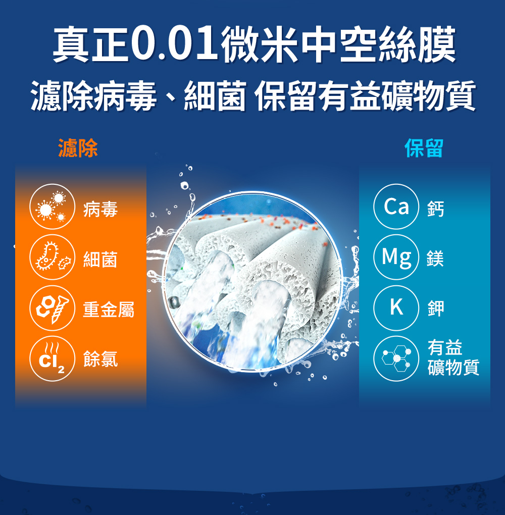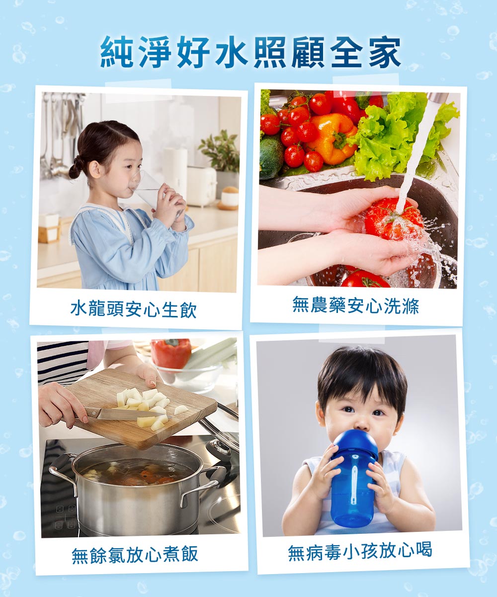 ➤100%過濾,打開水龍頭就能飲用清新好水 一般RO逆滲透、UV(紫外線)殺菌等淨水科技,無法100%保證每一滴水都能被淨化。