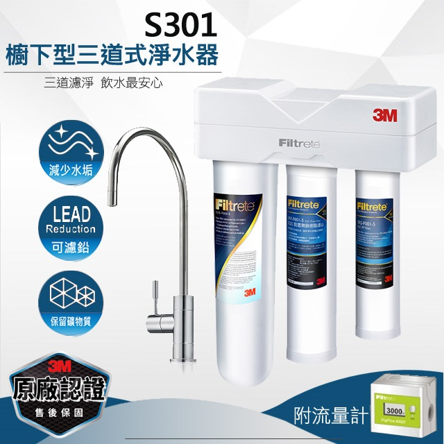 【3M】S301三道式淨水系統【鵝頸款】【前置PP系統|前置樹脂系統|S004生飲淨水系統】【贈全台安裝及流量計】