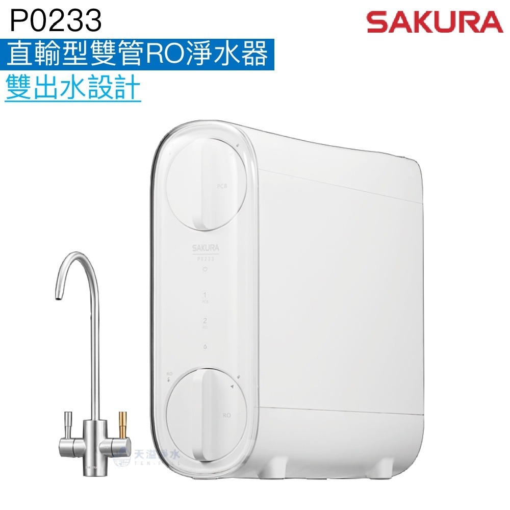 【SAKURA 櫻花】P0233直輸型雙管RO淨水器【雙出水模式|贈中彰投苗安裝服務|400G大產量】