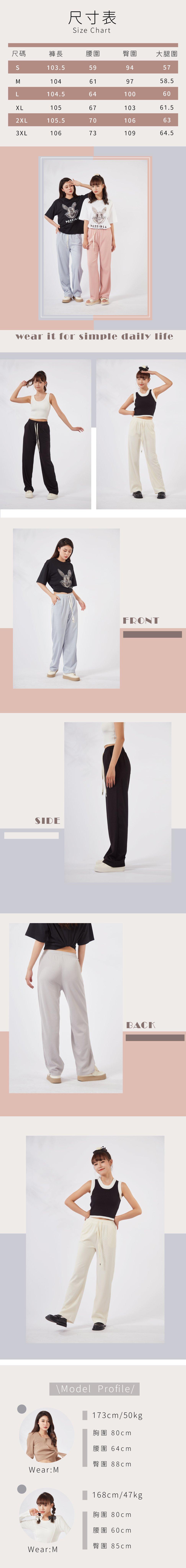 【薇奈爾】高個子綁繩鬆緊直筒褲 休閒褲 闊腿褲