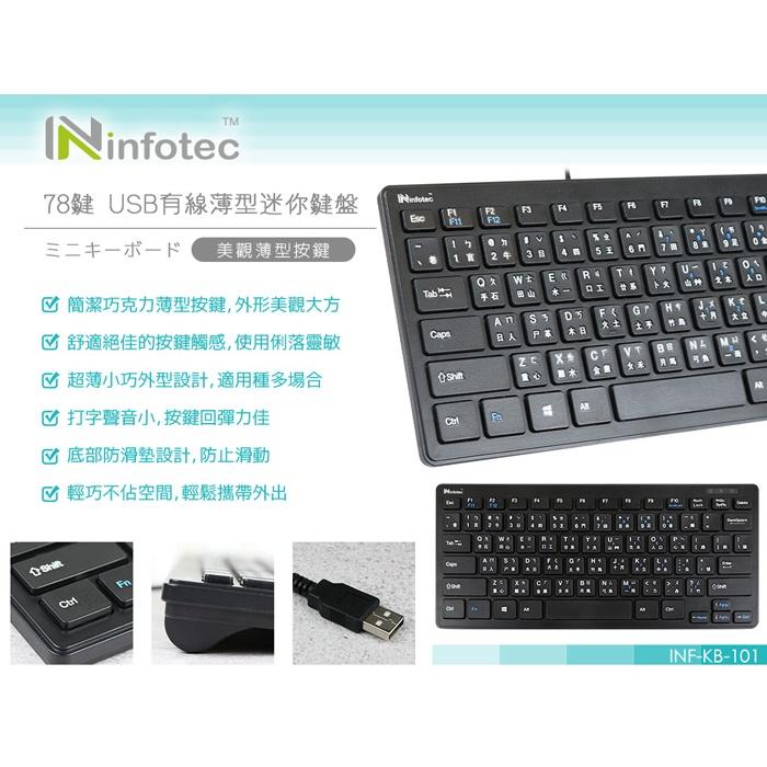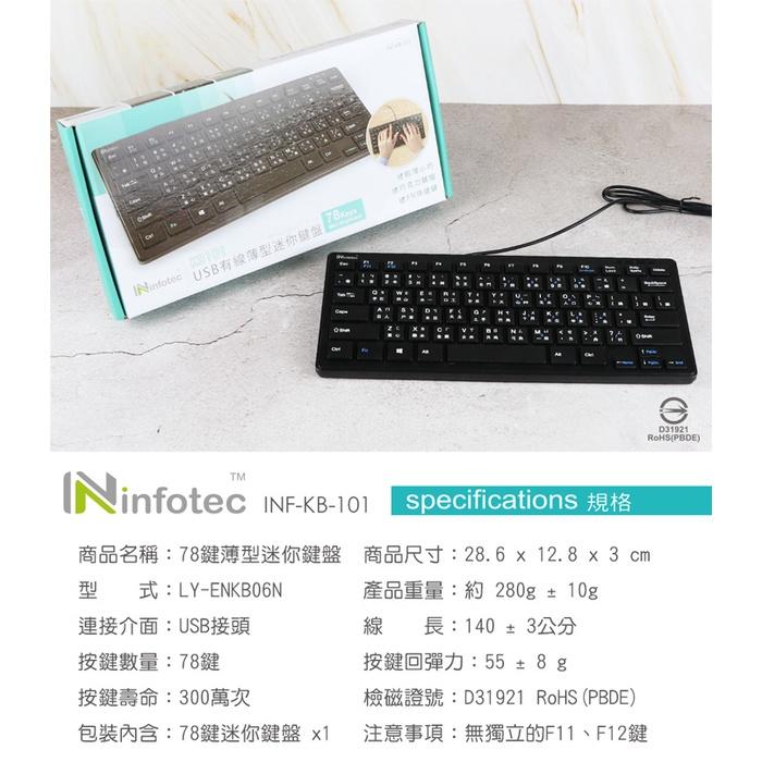 ~協明~ infotec KB101 USB有線薄型迷你鍵盤 78鍵 體積輕薄小巧,不佔空間
