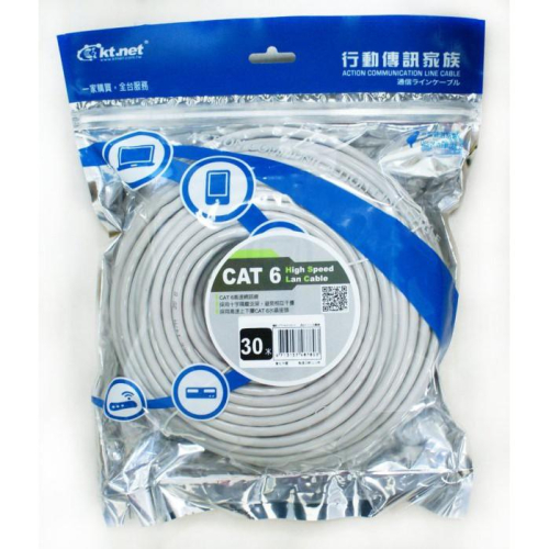 ~協明~ kt.net RJ45 Cat.6 網路線 30米 - 網路接頭一體壓製成型,不易掉落鬆脫