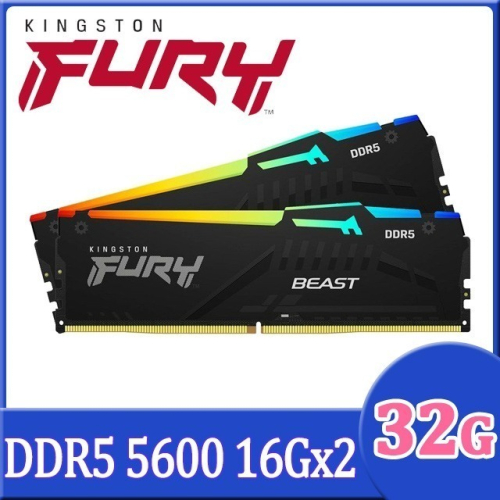 金士頓 Kingston FURY Beast 獸獵者 DDR5 5600 32GB(16GBx2) RGB桌上型超頻記憶體
