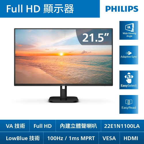PHILIPS 22E1N1100LA 液晶螢幕(22型/120Hz/內建喇叭/VGA/HDMI/4ms/VA)