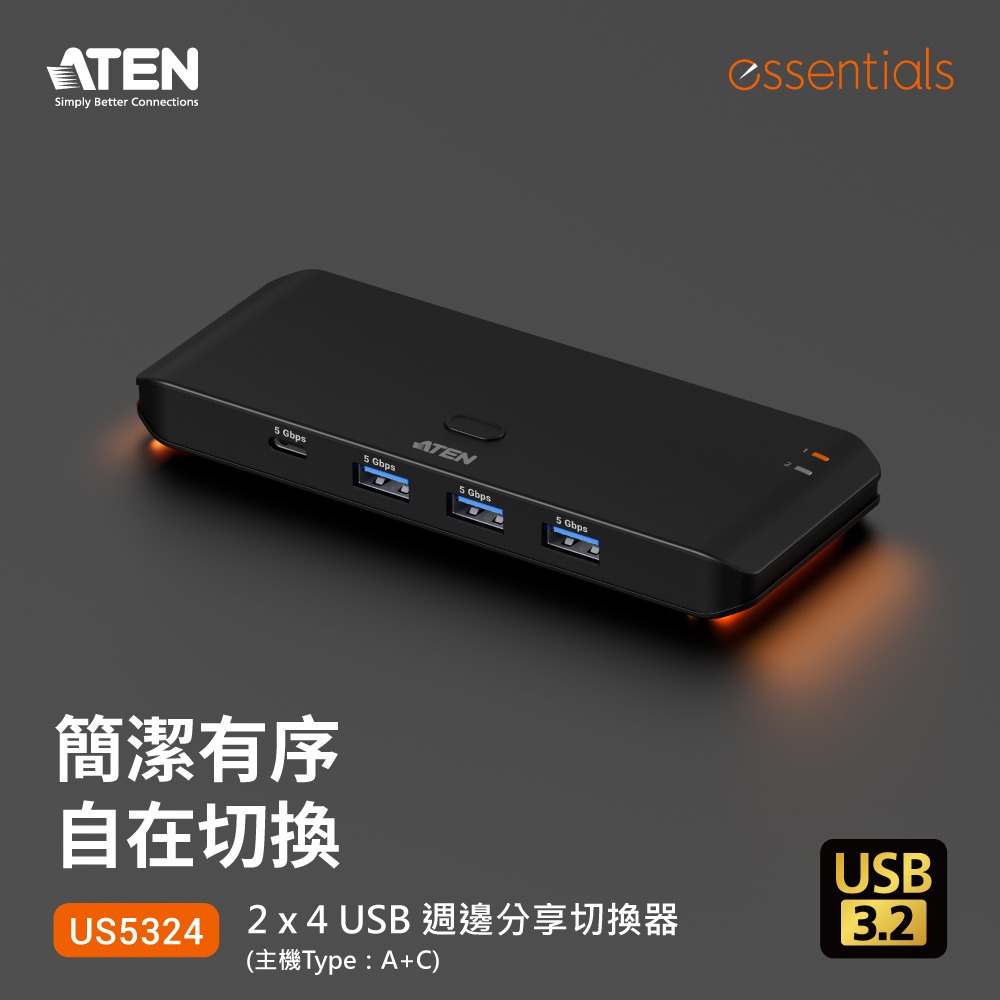 ATEN US5324 USB+C主機共享4組USB設備5Gbps+切換鍵