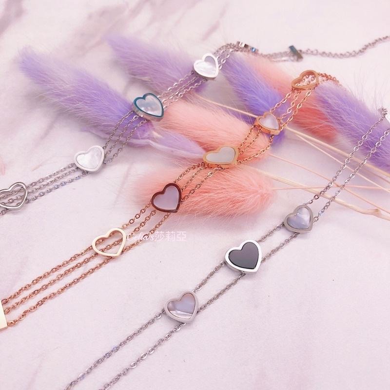 Celia 莎莉亞 白貝 愛心 簍空 鈦鋼手鍊 抗過敏 保色