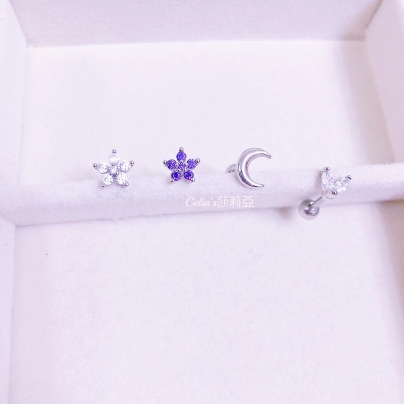 Celia 莎莉亞 醫療鋼 鎖珠 耳釘 單支售 轉珠 花 月亮 葉子 抗過敏 保色 睡覺免摘