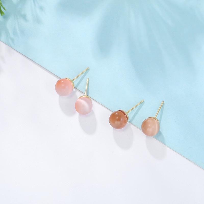 Celia 莎莉亞 天然 草莓晶 水晶 粉色 925銀 貼耳 耳環