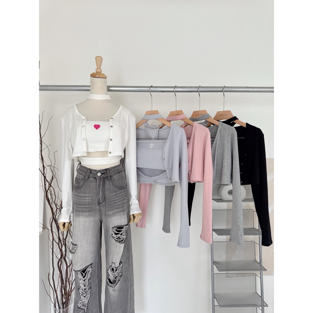 愛心刺繡背心+薄長外套,一套搞定日常與約會穿搭!微性感又不失可愛氣質。