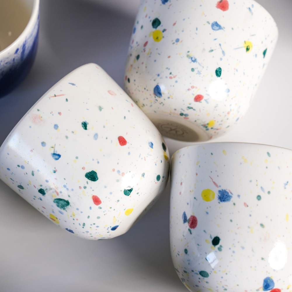 每個杯子尺寸會有輕微個體差異、杯口大多數非正圓,且普遍會存在一些工藝痕跡(例如沙眼、黑點、凹點等),每個杯子根據施釉程度的不同,