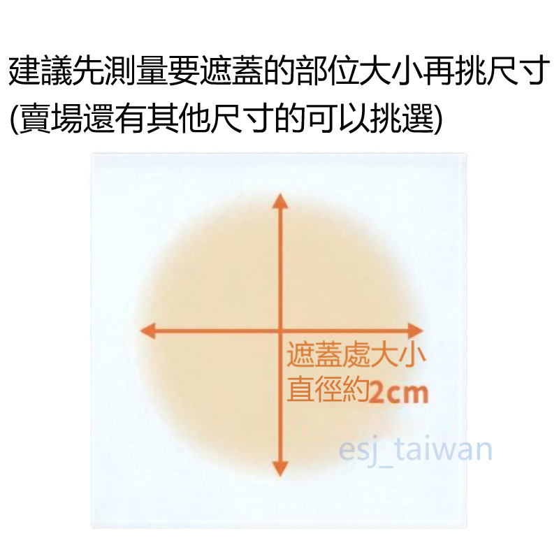 圓型尺寸: 直徑約 3 公分(中間遮蓋部份直徑約 2 公分)