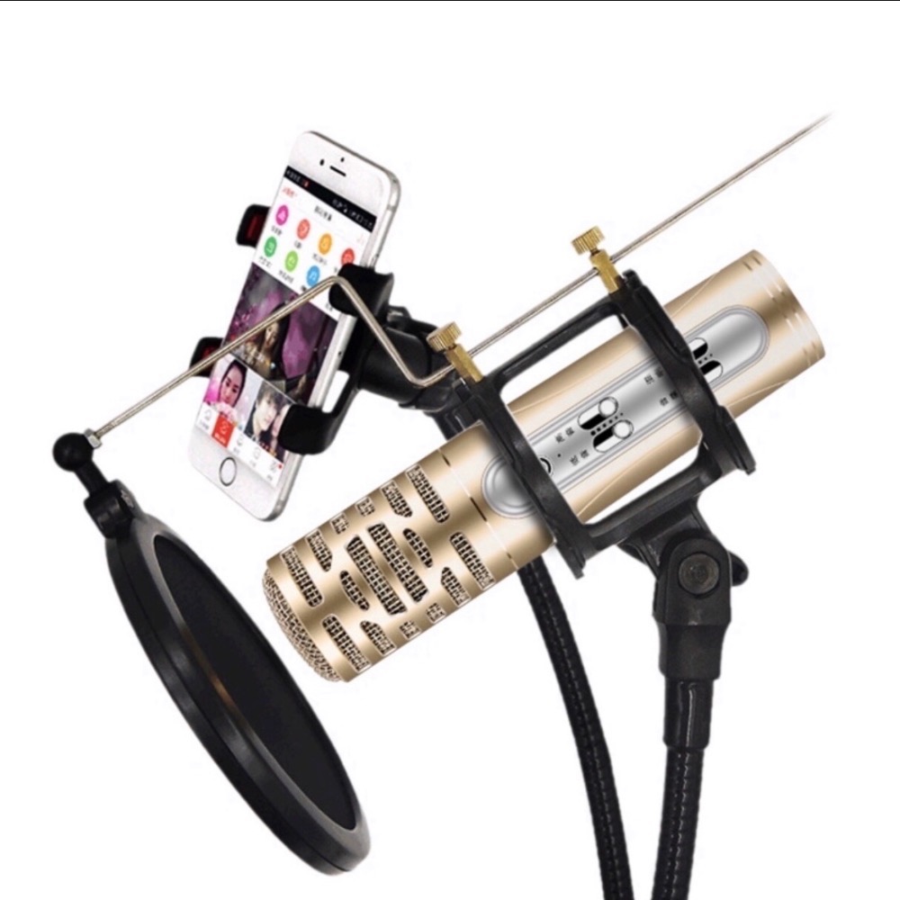 免運現貨台灣寄出🔥錄音麥克風 套裝「麥克風+MV支架+耳機+防噴套」歡歌 歡樂唱唱 歡樂語音 全民party 必備神器