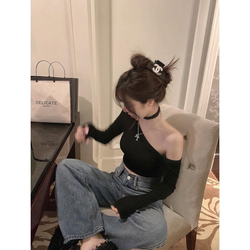 𝐔𝐌𝐄𝐎𝐖 𝐒𝐓𝐔𝐃𝐈𝐎 辣妹の繞頸斜肩修身長袖上衣(3colors)露肩