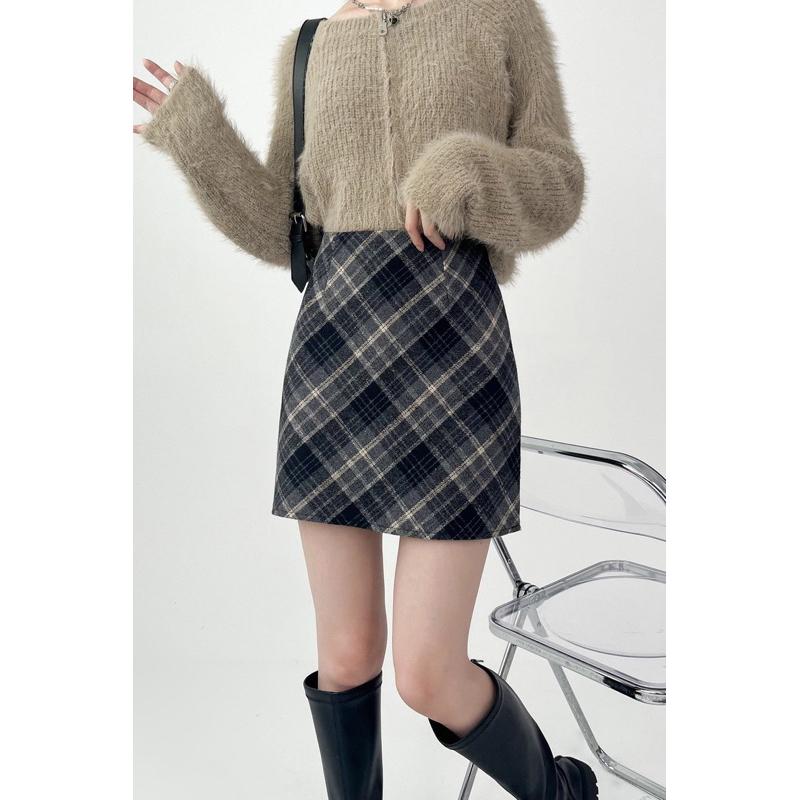 11月新品⛄️[大尺碼到5XL]𝐔𝐌𝐄𝐎𝐖 𝐒𝐓𝐔𝐃𝐈𝐎 格紋毛呢高腰短裙(2colors)秋冬 包臀裙 格子裙