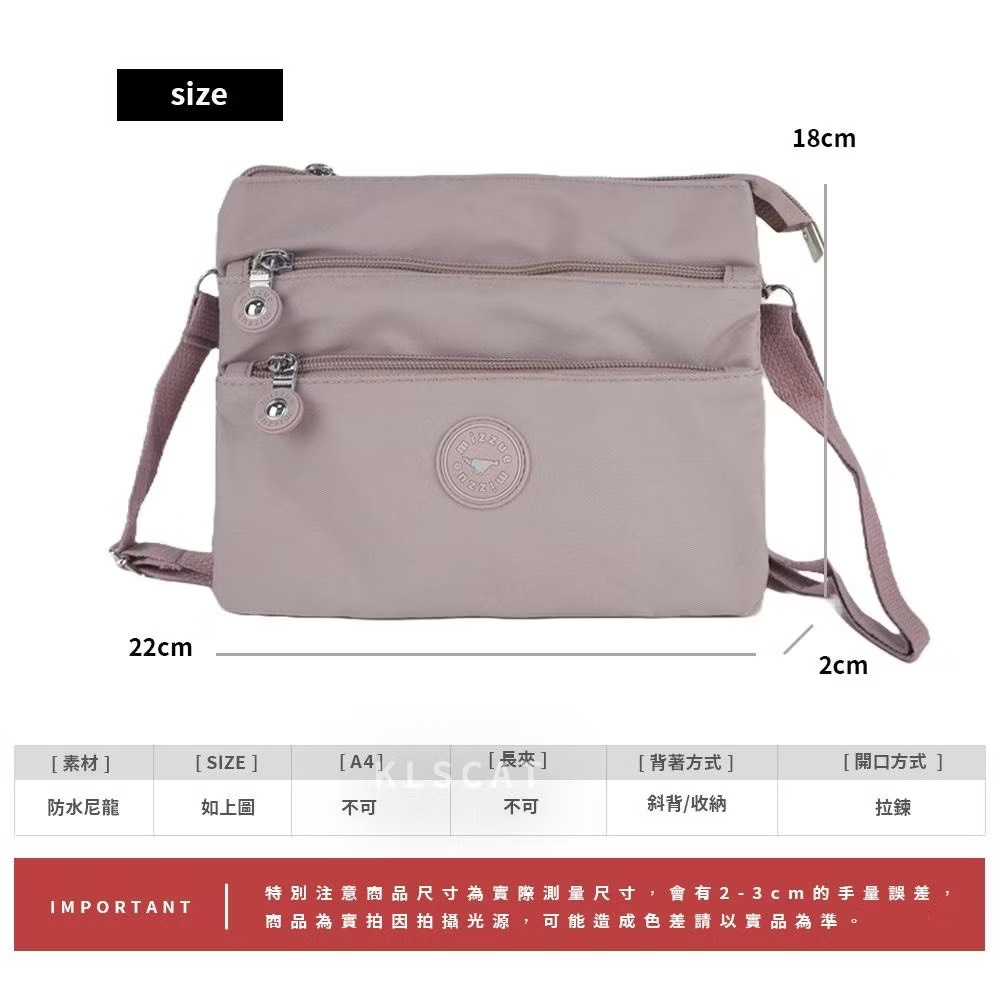 MIZZUE 多隔層防水尼龍小包 收钱包 小方包 妈妈包 單肩斜跨 包包 百搭 時尚 PL891 KLSCAT