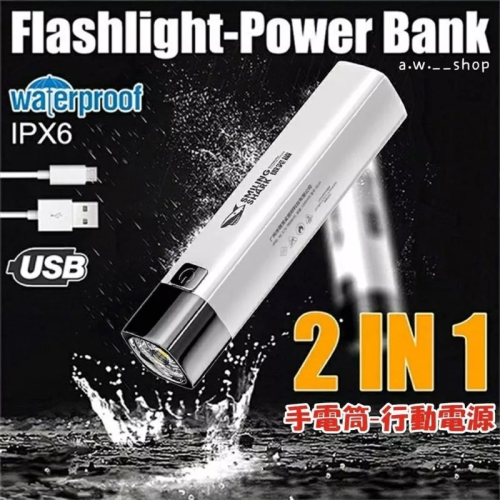 USB充電戶外IPX6防水三模式手電筒行動電源 LED徒步便攜露營緊急照明燈 登山輕量防摔1200mAh鋰電池光源設施