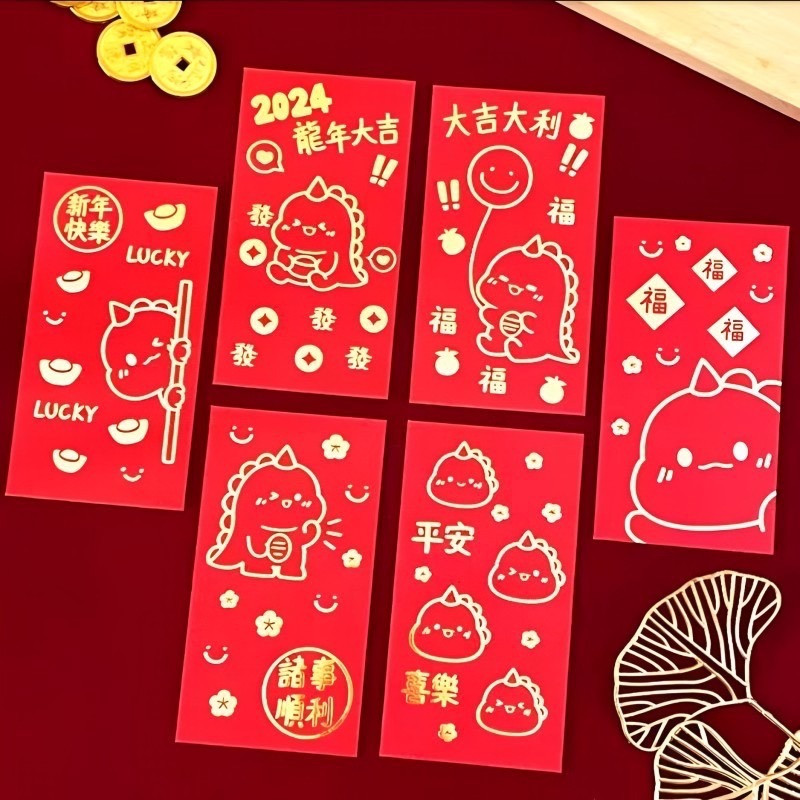 •年度幸運吉祥,恐龍象徵好運與幸福,以可愛形象為紅包袋增添年度吉祥元素,為收福添喜。