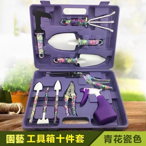 - 完整園藝工具組,包含鏟子、耙子等10件必備工具,適合各種園藝需求,一套輕鬆搞定。