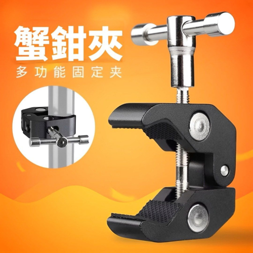 •可以將蟹鉗安裝在直徑47mm以內的管徑上使用,可以透過3/8/1/4螺扣安裝相機、 閃光燈、LED燈等設備,也可以配合怪手、魔術手臂使用,實現更多用途。
